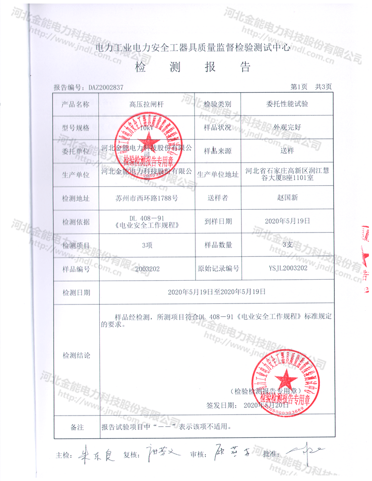 金能絕緣操作桿10kv檢測報告